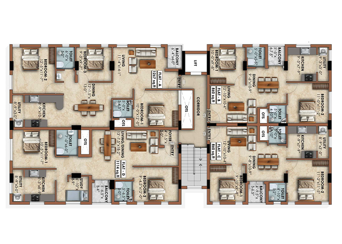 These premium flats in T. Nagar come in 1090, 1114 & 1267 sqft configurations, offering efficient layouts that ensure abundant natural light, good ventilation, and everyday comfort.
